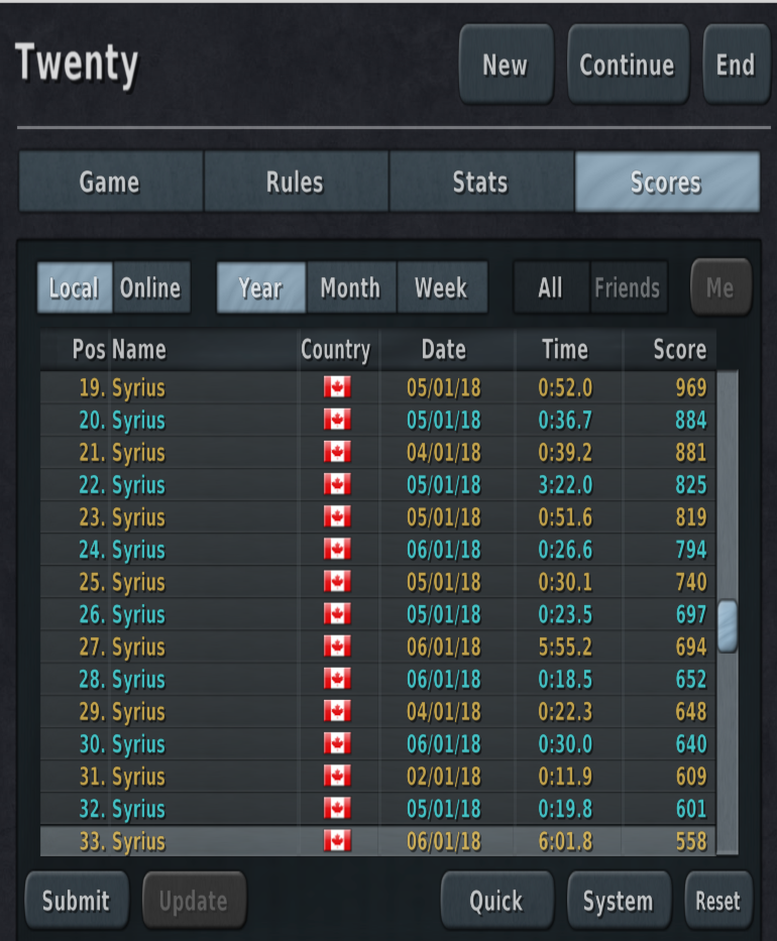 Re: Game Twenty with Solitaire 3D 6.73 (MacOs)